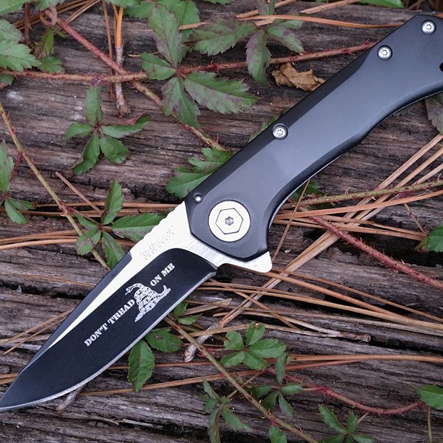 Don’t tread on me Gadsden flag engraved on a Kershaw Showtime model 19