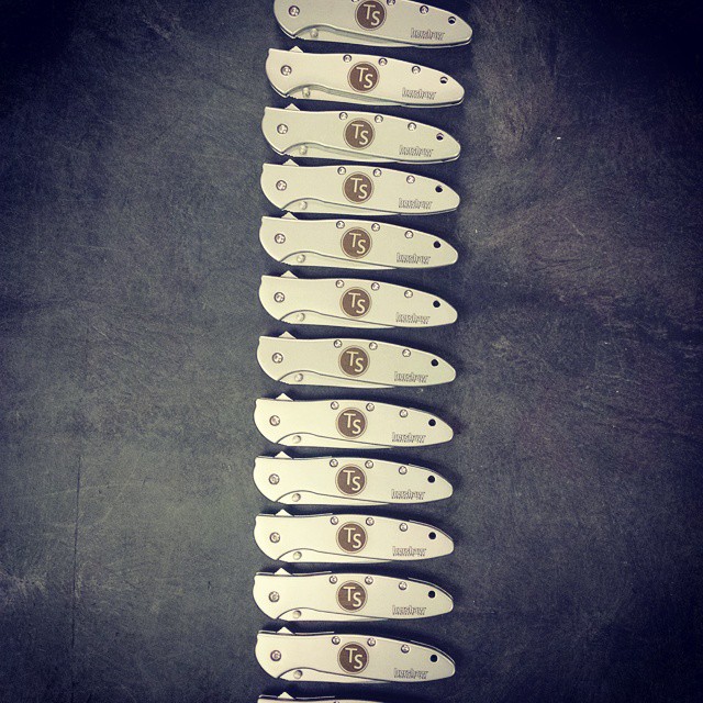 Kershaw Knives Leek Plain Edge 1660. Good things just keep rolling out of the door. Check out this custom engraved Logo on the handle of these Leeks. ANYTHING is possible just ask and we can get it done for you! WWW.KERSHAW-KNIVES.NET