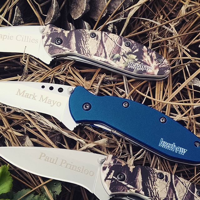 12530658_532497500243134_952184472_n Published March 23, 2016 at 640 × 640 in Kershaw Scallion Knives 1620. Camo and navy blue colored aluminum hand Kershaw Scallion Knives 1620. Camo and navy blue colored aluminum handles with custom engraving. These were done for one of our special customers. Continue reading →
