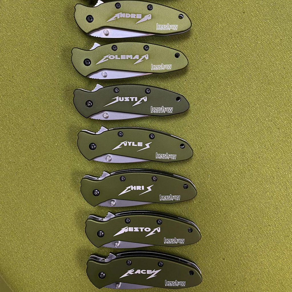 238689350_1233932887110110_5947020186513218278_n Published October 5, 2021 at 1440 × 1440 in Kershaw Scallion Olive Knife 1620OL- see the many shades of olive alum Kershaw Scallion Olive Knife 1620OL- see the many shades of olive aluminum handles. Engraved in Led Zeplin font for this groom’s wedding party- Rock ON!! Continue reading →